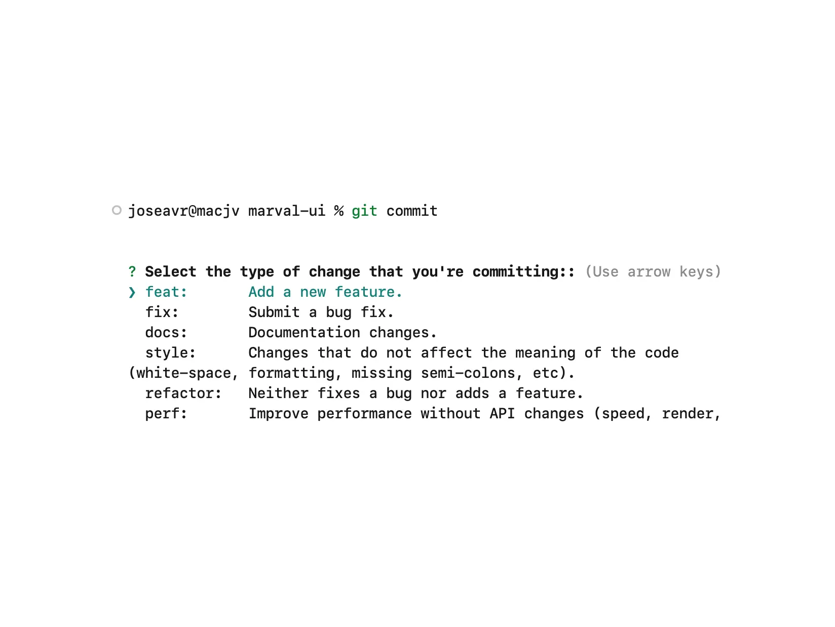 "description": "Changes that do not affect the meaning of the code (white-space, formatting, missing semi-colons, etc).",