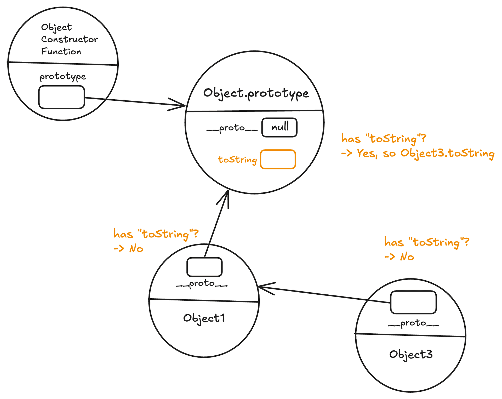 Now, let's discuss how chain of properties works in Objects, which is kinda weird but the diagram and example will help.