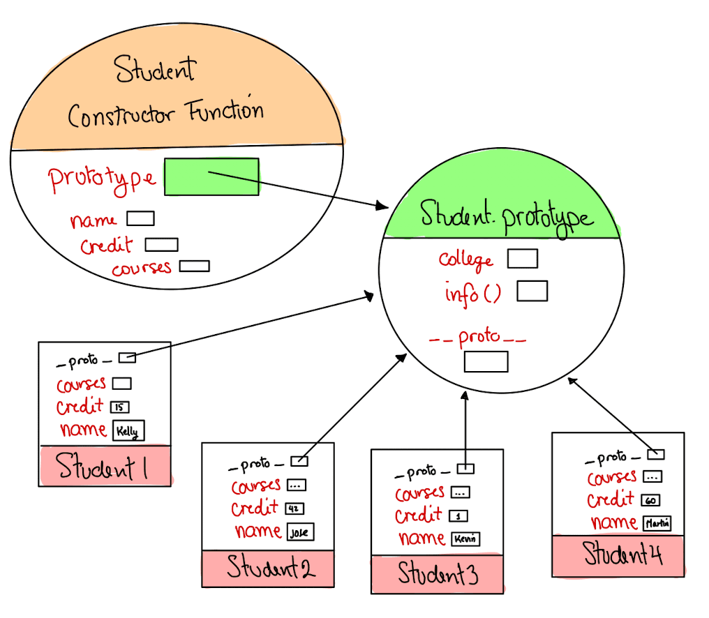 properties that share in common between all objects. If want to set a property that is unique between all objects, set it into function constructor